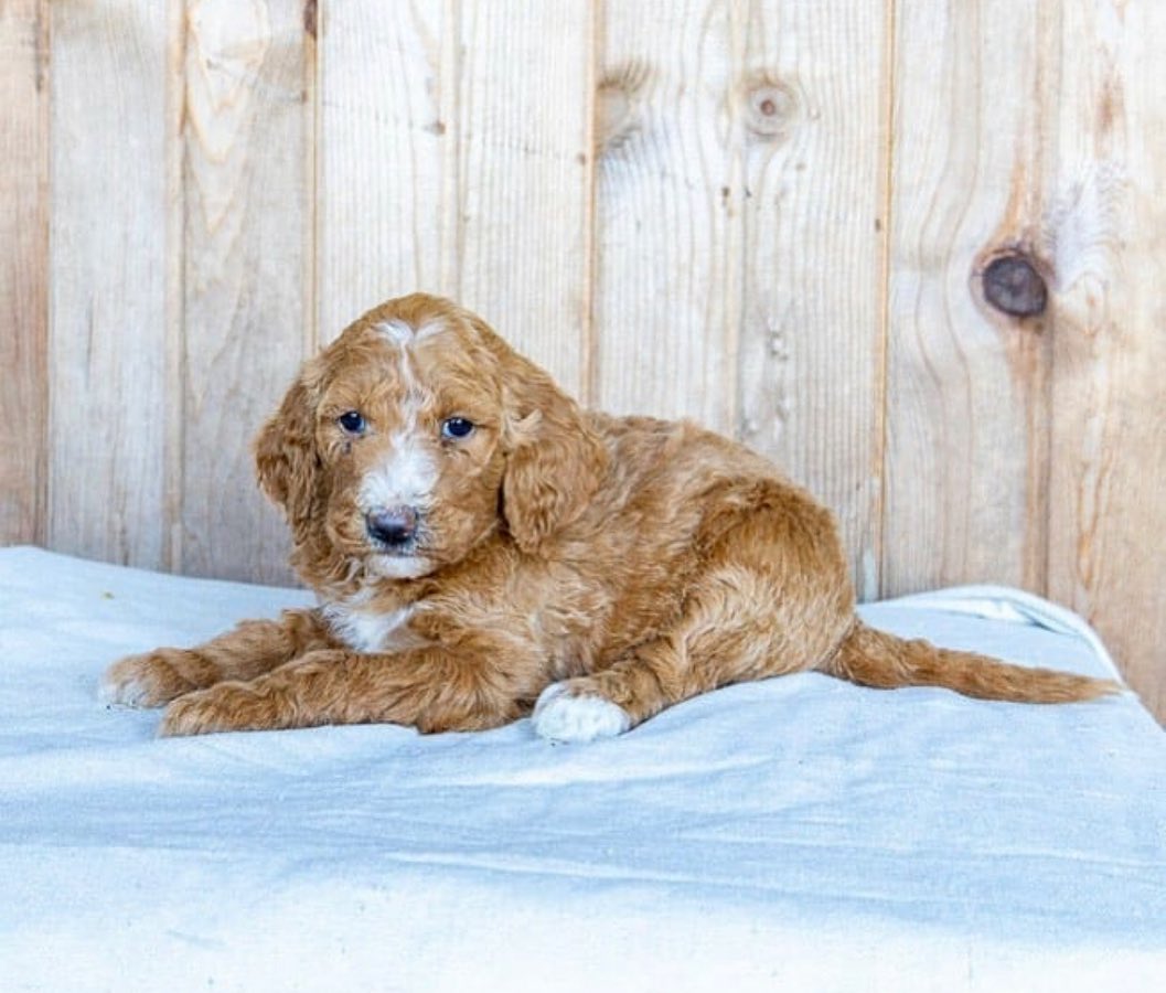 English goldendoodle puppies for sale near me should have a wavy to curly coat of about two to three inches in length. He has longer hair on the tail, body, ears, and legs (legs may be slightly feathered); the hair on the head and muzzle tends to be shorter.